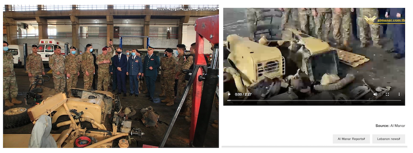 The Al-Manar report was aired one day following an event organized at a Lebanese army barrack in Kfarshima during which the British Ambassador in Lebanon, Ian Collard, offered, the Lebanese armed forces, among other items, spare parts for the army's Land Rover military vehicles, valued at one million pounds sterling.