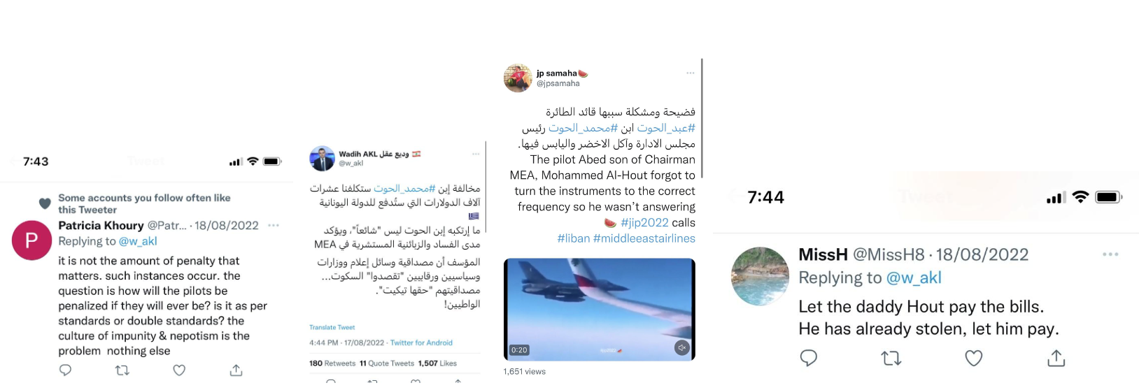 In his statement, Minister of Transportation Hamiyeh failed to reveal the identity of the crew, which likely reflects a desire to protect the identity of the pilot, who is the son of the chairman of the board of directors of Middle East Airlines. He also failed to explain the reason why the Greek fighters thought that there might be an emergency onboard the Middle East Airlines aircraft; and his statement further failed to indicate that the two Greek jets were actually F16 fighters jets, indicating the seriousness of the violation of civil aviation rules which the MEA flight crew committed.