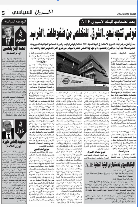 Indeed, Al-Chourouk and other online media and influential Facebook pages generally supporting President Kais Saied framed it as a decision to shift to the East. Specifically, on May 13, Al-Chourouk published an article claiming that “After joining the AIIB, Tunisia is heading toward the ‘East’ to get rid of the pressures of the ‘West.’”